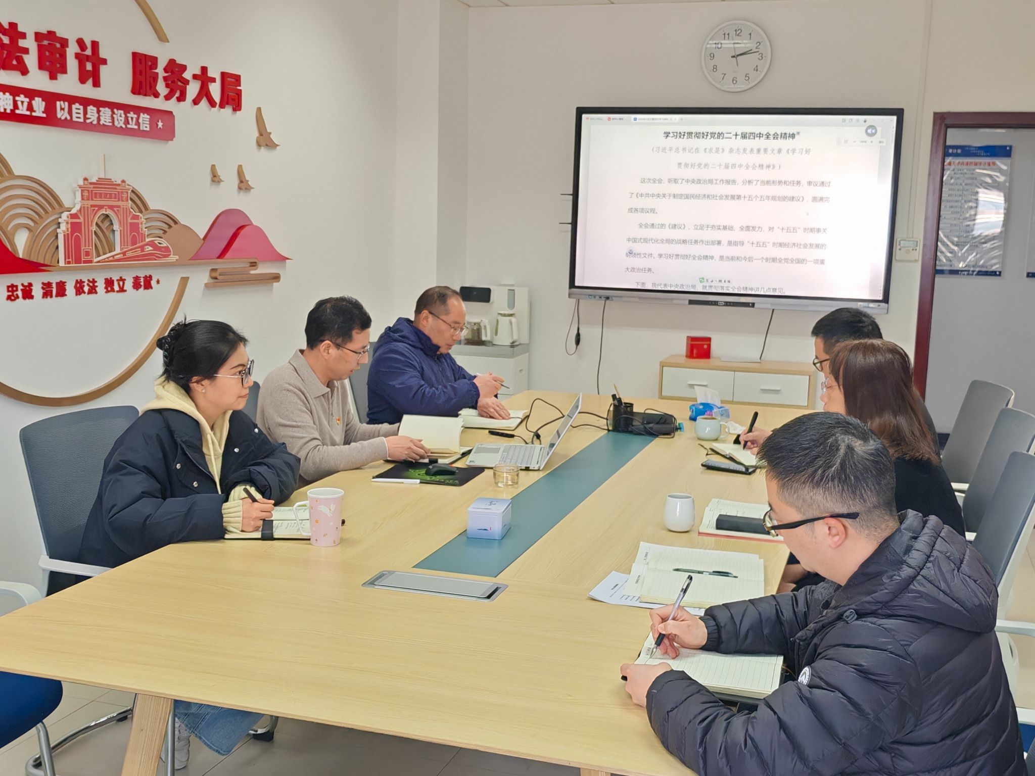 为深入学习贯彻党的二十届四中全会精神及习近平总书记近期系列重要讲话精神,精准把握“十五五”开局之年的战略方向与实践要求,进一步提升全体党员的政治理论素养与使命担当意识,1月15日下午,审计处党支部在犀浦校区综合楼527室开展1月主题党日理论学习活动。活动由党支部书记俞建海同志主持。